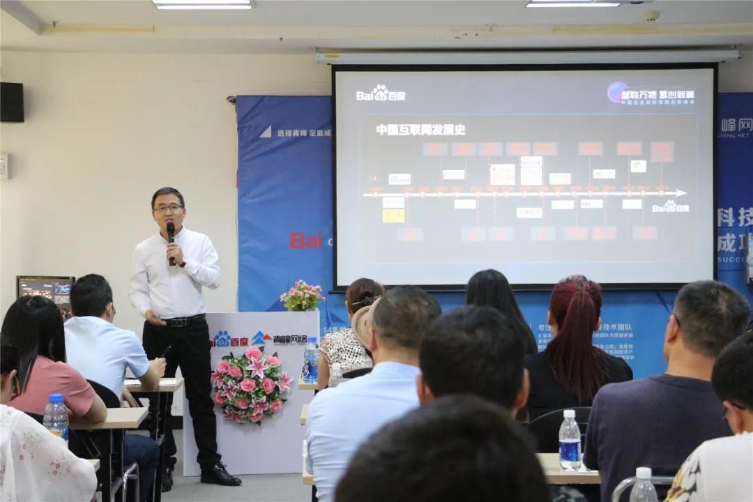 洛陽市青峰網(wǎng)絡(luò)科技有限公司百度推廣運(yùn)營總監(jiān)張浩陽先生發(fā)表主題演講,以一張中國互聯(lián)網(wǎng)發(fā)展史的圖片切入,講解了以智能技術(shù)為核心的新形勢下,洛陽的企業(yè)家究竟怎樣讓自己的品牌迅速突出,怎么去選擇性價(jià)比更高的商業(yè)解決方案來助力自己的成功。